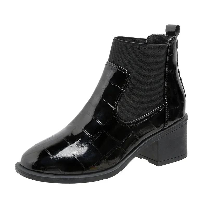 Модные женские ботинки челси осень/зима британские лакированные кожаные ботинки на среднем каблуке с круглым носком на высоком каблуке женские ботинки из блестящей кожи