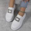Модная дышащая обувь одинарная плетеная муха для женщин с низким верхом, квадратной пряжкой, рукавом из страз, уличная обувь для женщин с низким верхом