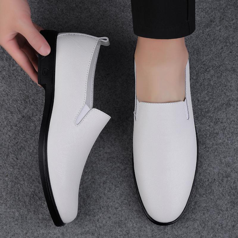 Летние мужские классические белые повседневные кожаные туфли с дышащим рукавом и полыми вставками для мужчин, удобные повседневные туфли для активного отдыха на весну
