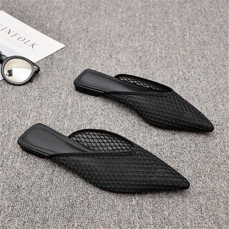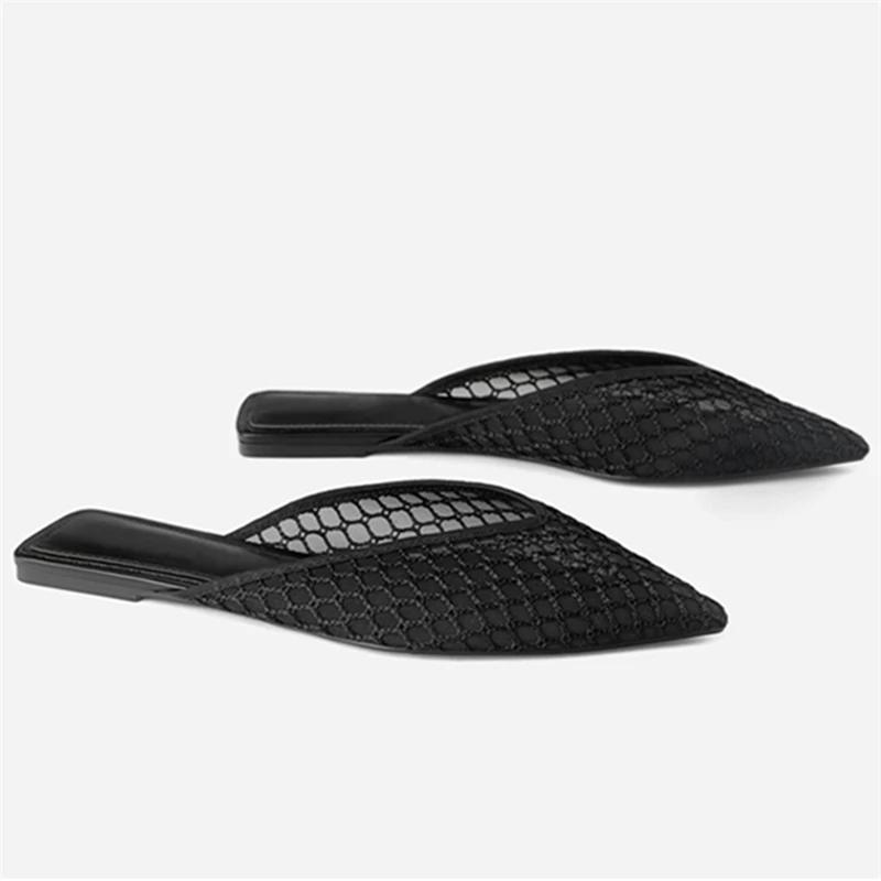 Модные черные полутапочки с острым носком, женские туфли на плоской подошве, женские сетчатые пляжные шлепанцы, наружные мюли, дизайнерские сандалии-гладиаторы, лето 2024 г.