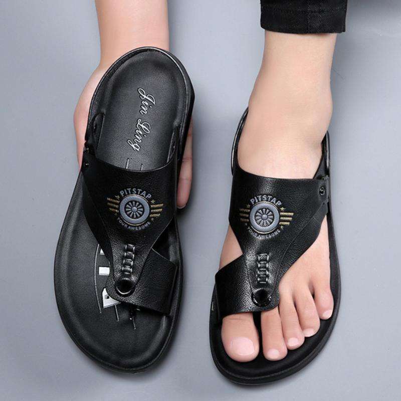 Модные мужские сандалии летние мягкие подошвы нескользящие пляжные туфли мужские большие шлепанцы повседневные кожаные сандалии sandalias hombre pantuflas