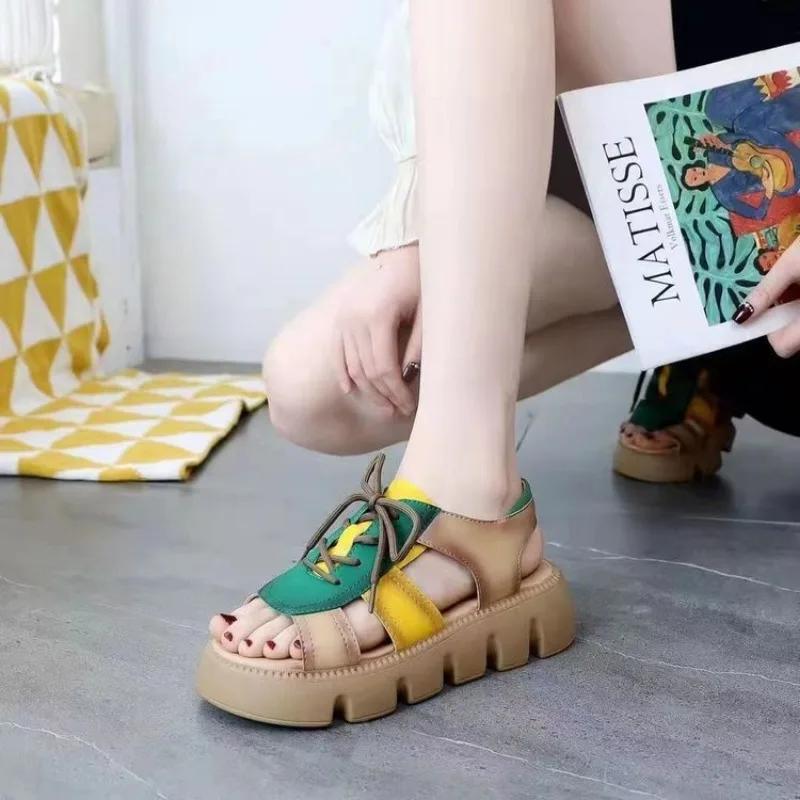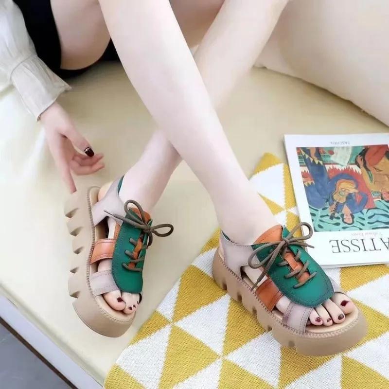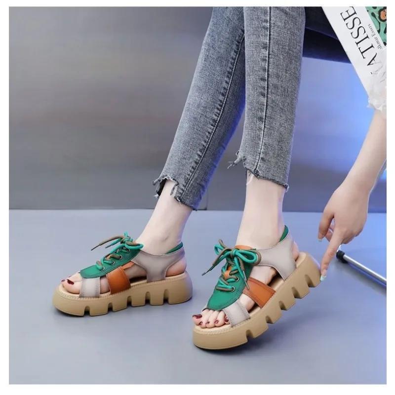 Модные пляжные женские сандалии Модные женские сандалии Удобные износостойкие нескользящие женские туфли на толстой подошве 2024 Sandalias De Mujer