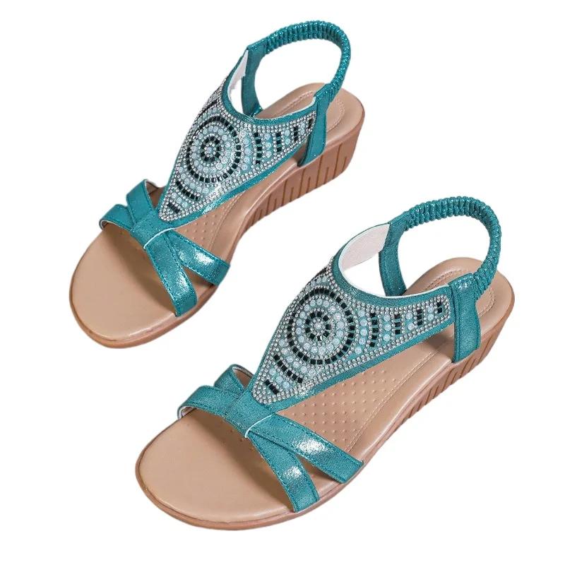 Модные богемные женские сандалии 2024 лето новые сандалии с пайетками удобная толстая подошва римские женские туфли