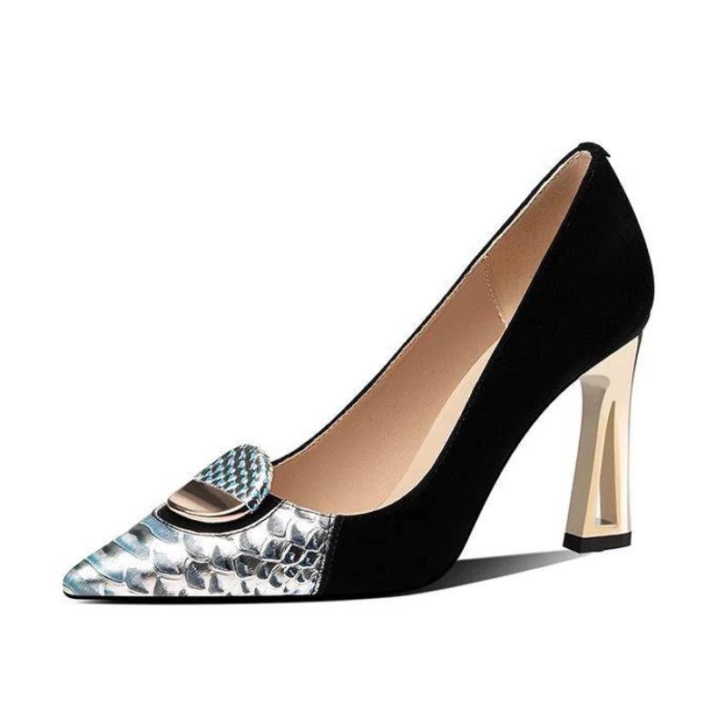Модные женские туфли на высоком каблуке 43 размера 2024 года, сексуальные туфли-лодочки с острым носком, женская обувь, повседневные модные женские туфли-лодочки, удобные туфли на низком каблуке