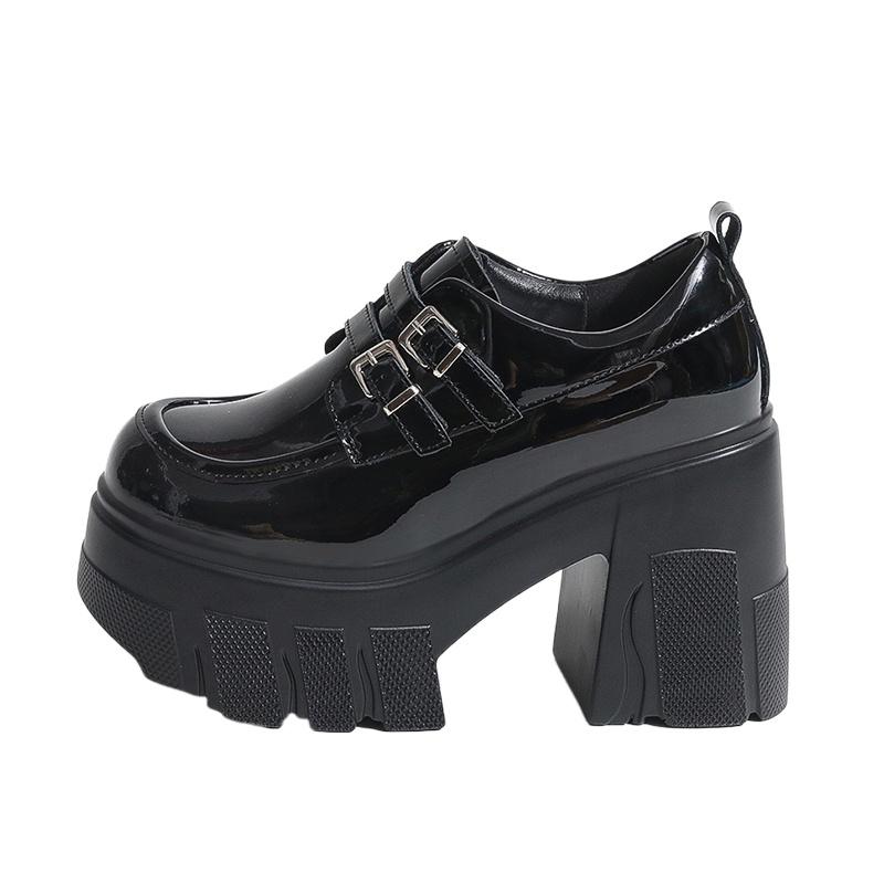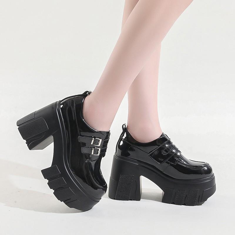 Модные толстые высокие каблуки лоферы женские 2024 осень мода кожаные туфли на толстой платформе женские туфли без застежек черные Jk Uniform Туфли Mary Janes