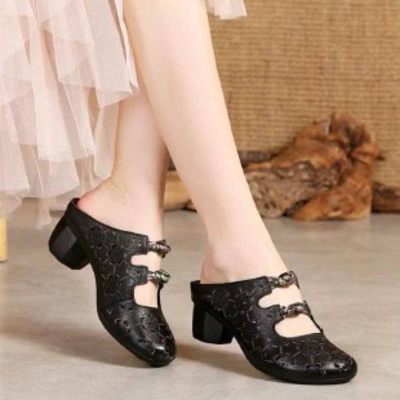 Модные летние женские туфли на толстом каблуке, полые тапочки, корейская версия, дышащие, удобные, большого размера, сандалии, повседневная мужская обувь, женская обувь