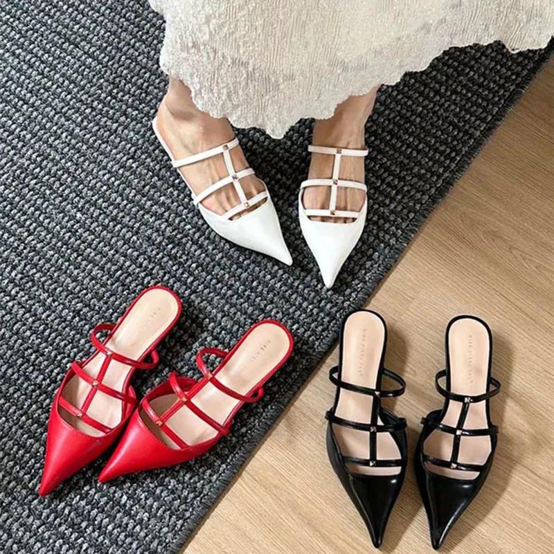 Модные туфли-лодочки с острым носком, женские туфли-лодочки, модные туфли на низком каблуке для банкета, туфли для вечеринки, женские шлепанцы с заклепками, сексуальная обувь для женщин