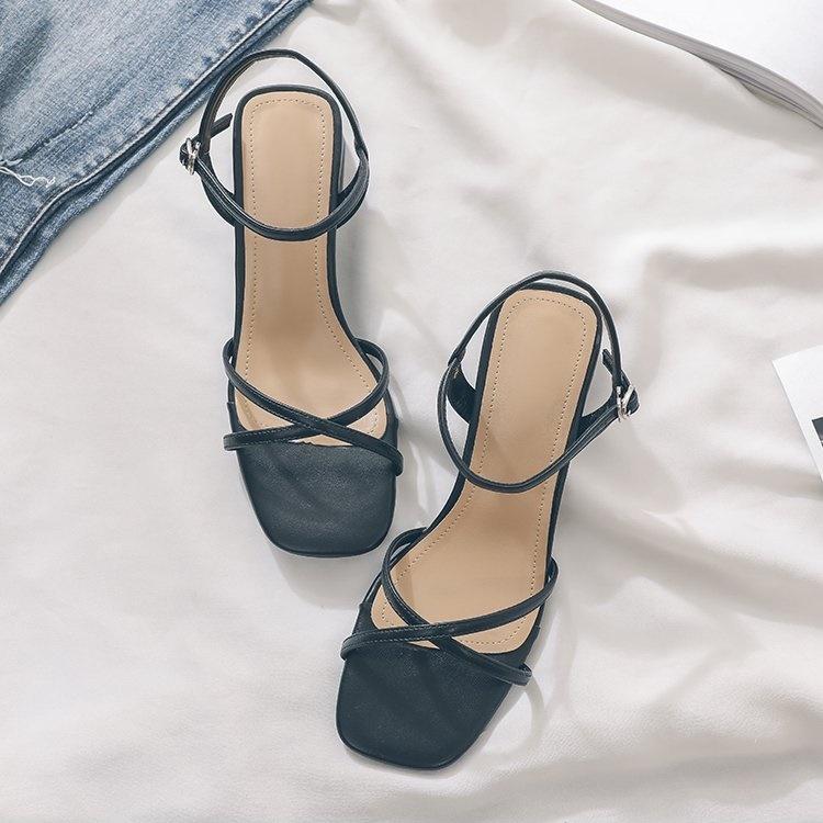 Модные женские босоножки, летняя обувь, туфли на высоком каблуке, роскошные дизайнерские туфли на блочном каблуке, низкие и элегантные повседневные платья средней длины, в продаже, черного цвета