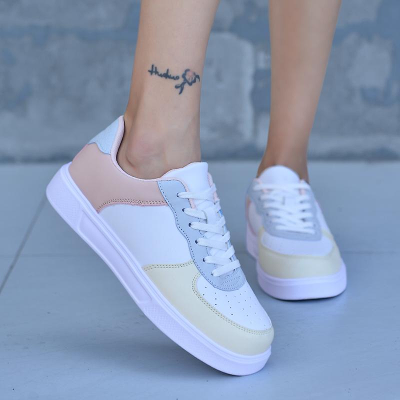 Модная осенняя женская вулканизированная обувь Модная удобная женская кожаная обувь на шнуровке для скейтборда Повседневная обувь для бега Ходьбы Платформа Спортивные кроссовки