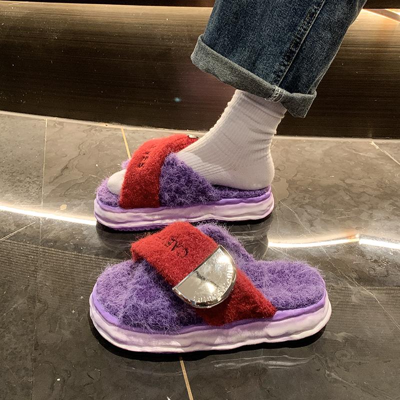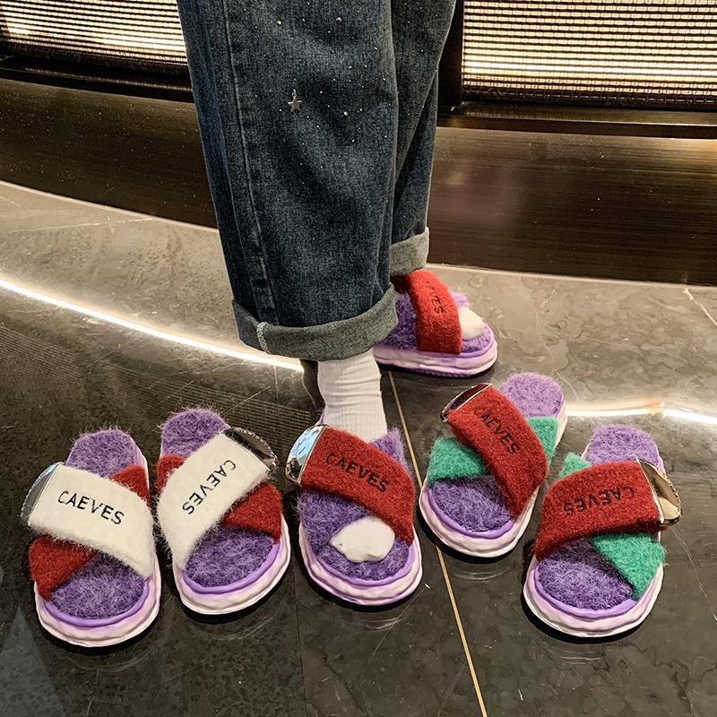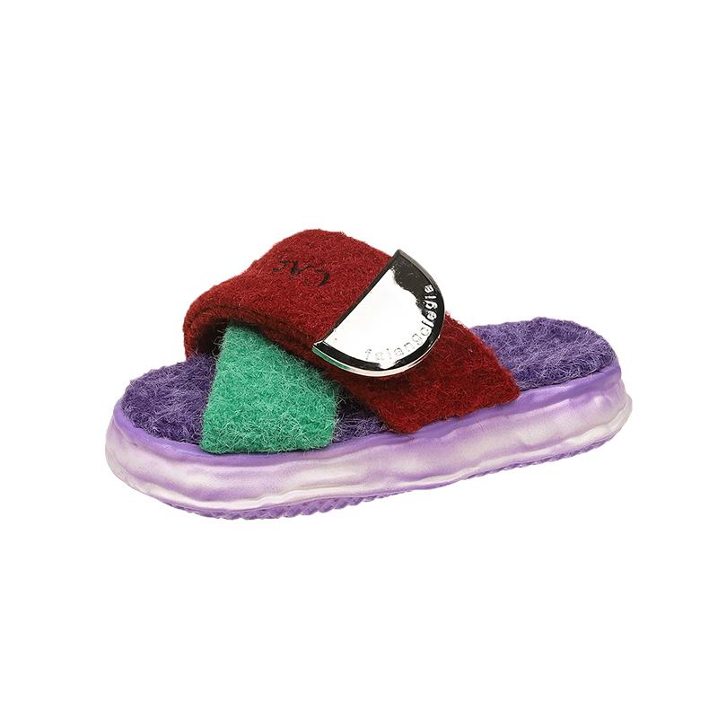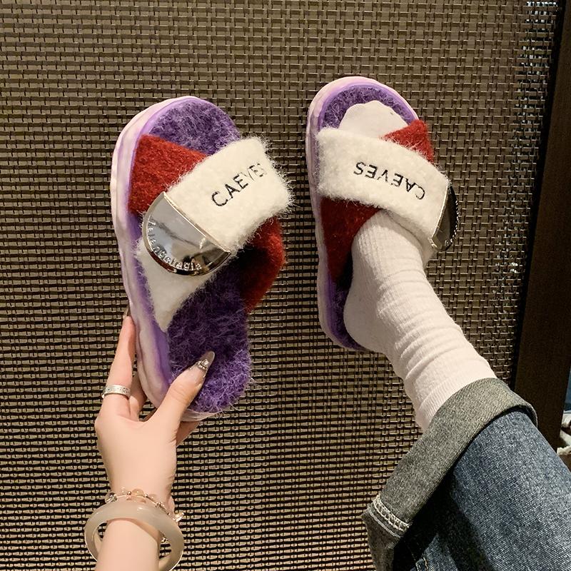 Модные зимние шлепанцы женские тапочки на платформе модные женские туфли с круглым носком и открытым носком цветные крест-накрест с удобными плоскими хлопковыми туфлями
