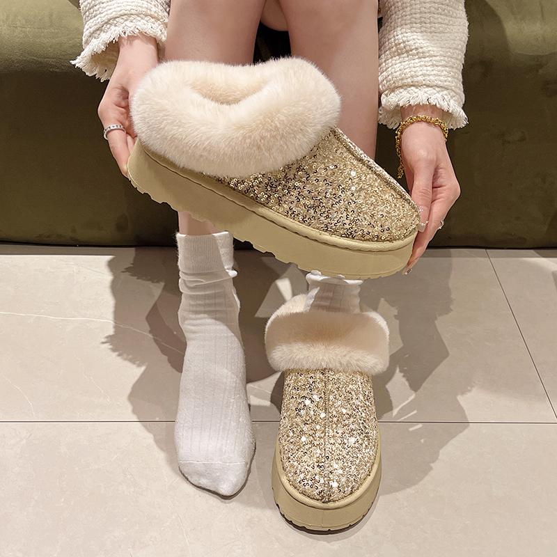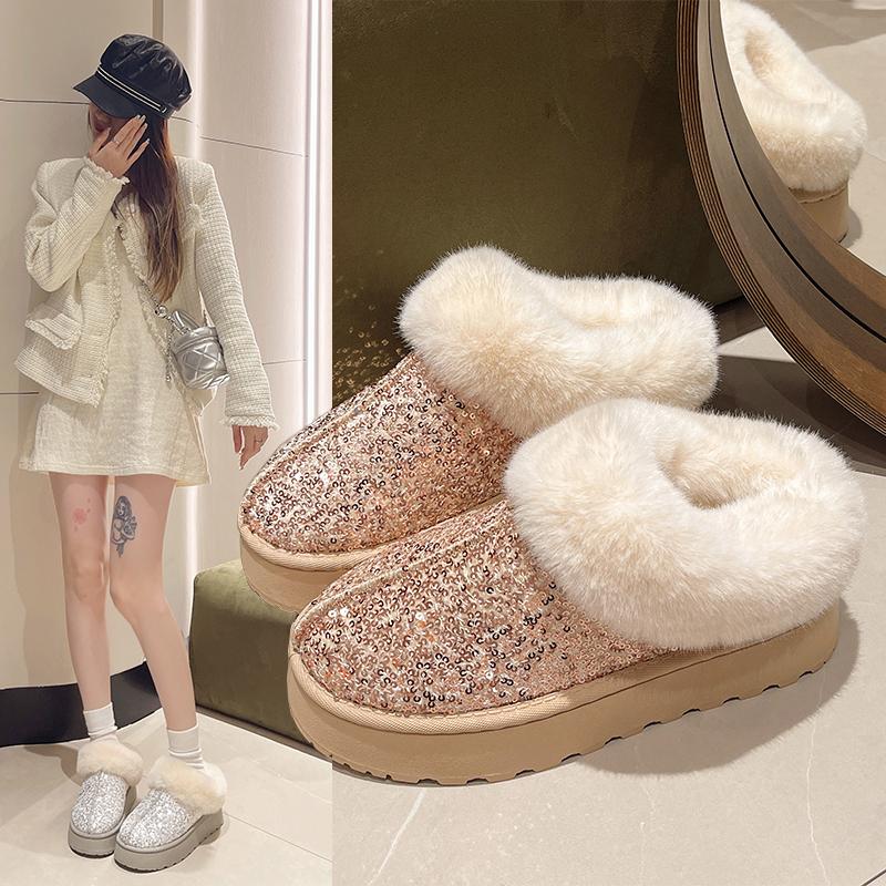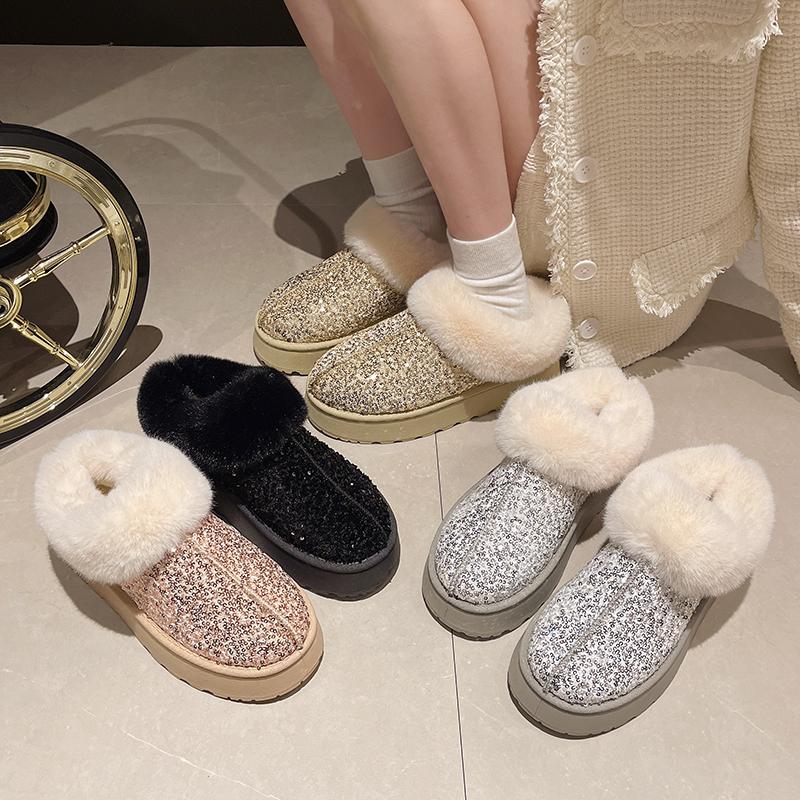 Модные зимние женские короткие плюшевые теплые зимние сапоги повседневная обувь новые блестящие меховые ботильоны челси туфли на плоской подошве на платформе женские туфли Botas