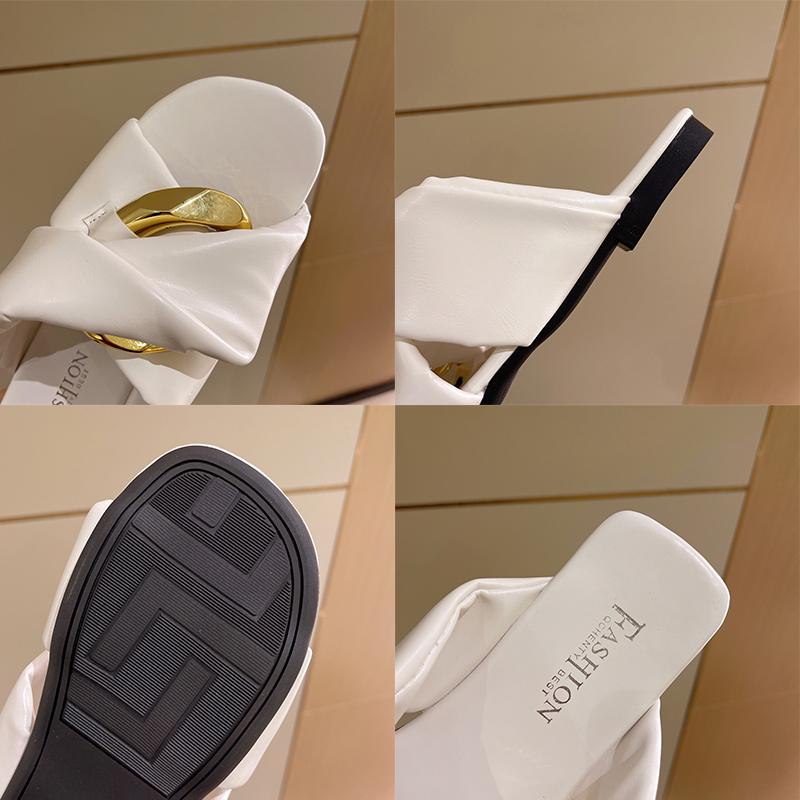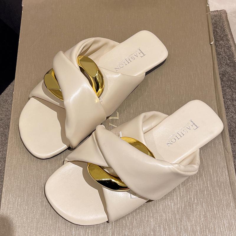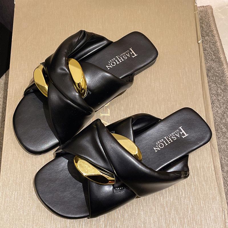 Модные новые женские тапочки женские шлепанцы 2024 летние повседневные домашние ПУ металлические украшения квадратный носок снаружи зеленые шлепанцы женские туфли