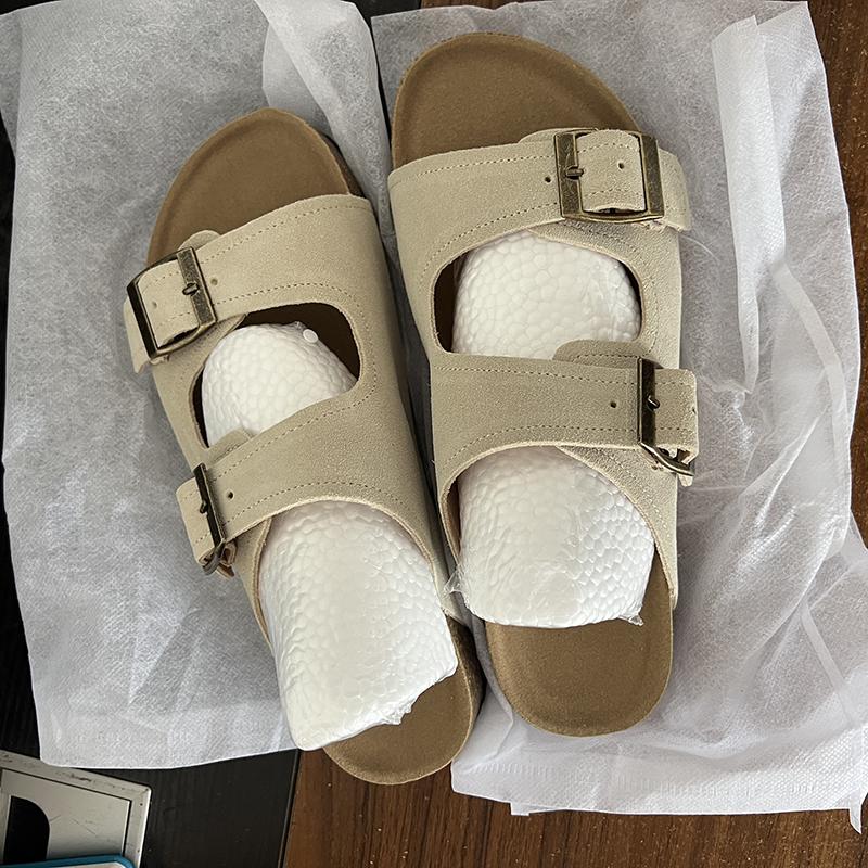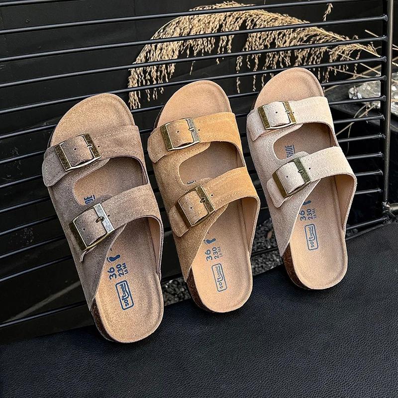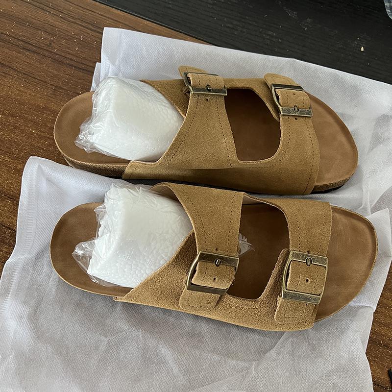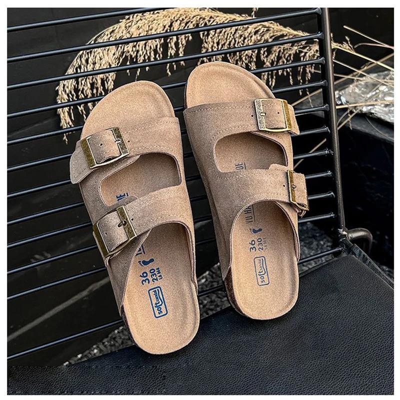 Мода 2024 года, летние женские тапочки из пробки с двумя пряжками, сандалии из коровьей замши на плоской подошве для женщин, ретро-модные садовые мюли-сабо