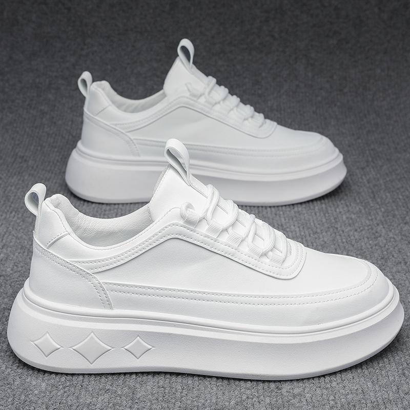 Модные мужские легкие повседневные туфли весна-осень 2024 года, новые универсальные кожаные школьные белые кроссовки со шнуровкой, нескользящие, мужские повседневные туфли