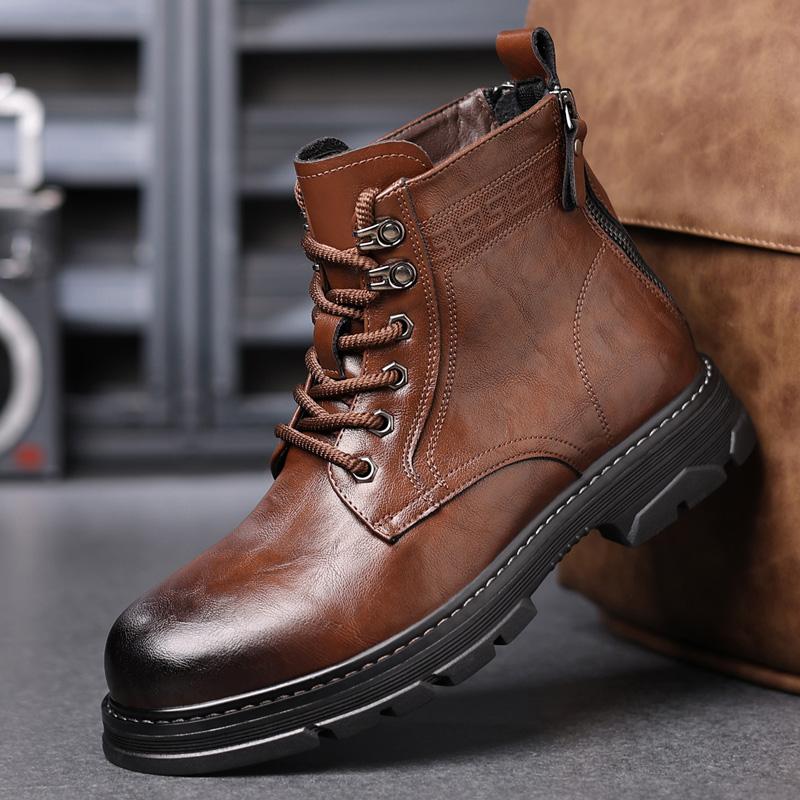 Модные мужские удобные прогулочные ботинки 2024 года, модная обувь для мужчин с высоким берцем, новые мотоциклетные и ботильоны, водонепроницаемые ботинки, мужская кожаная обувь