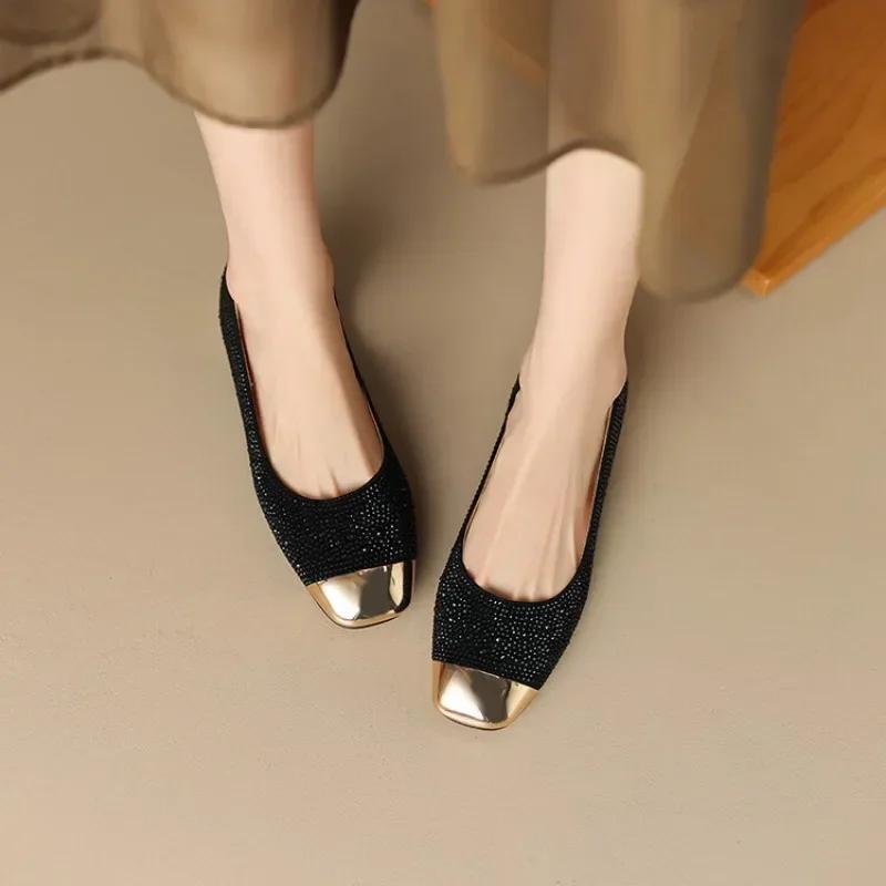 Модные детские замшевые туфли на плоской подошве Ochanmeb для женщин, блестящие, со стразами, неглубокие туфли на плоской подошве, женские туфли без застежек с золотым металлическим носком, туфли телесного цвета для вечеринки 40