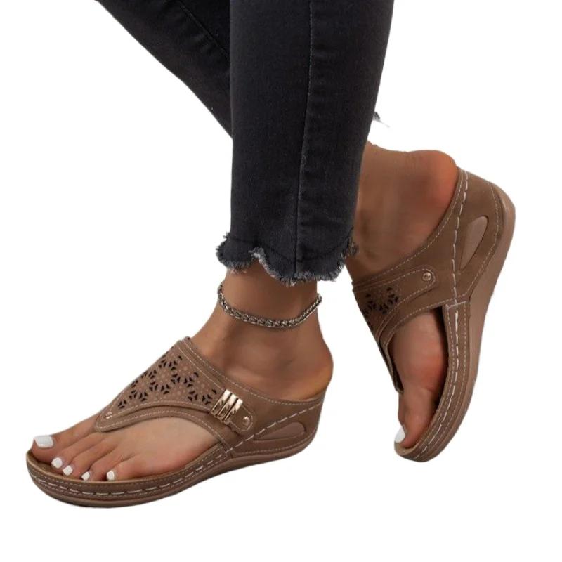 Модные летние женские босоножки SyfIyno на танкетке с ортопедическим носком и поддержкой свода стопы, женские нескользящие шлепанцы из искусственной кожи на мягкой платформе — купить товар онлайн с бесплатной доставкой по всему миру!