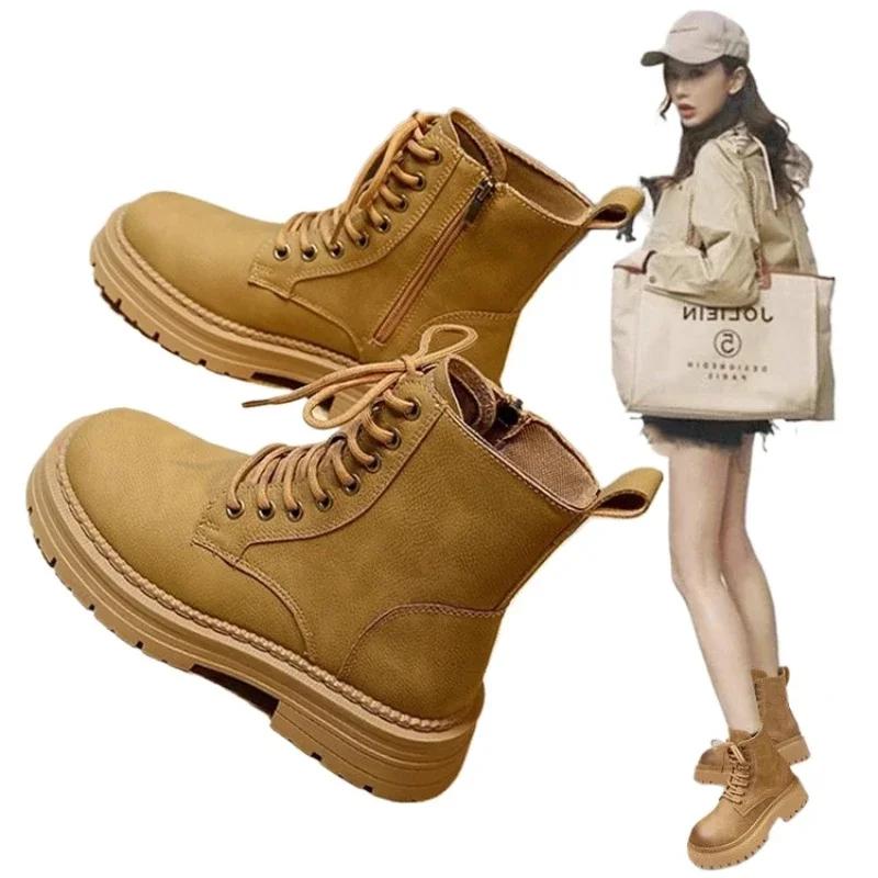 Модные короткие ботинки на толстой подошве для большего комфорта и тепла. Уличные ботинки для повседневной носки. Модные универсальные осенне-зимние новые стили.