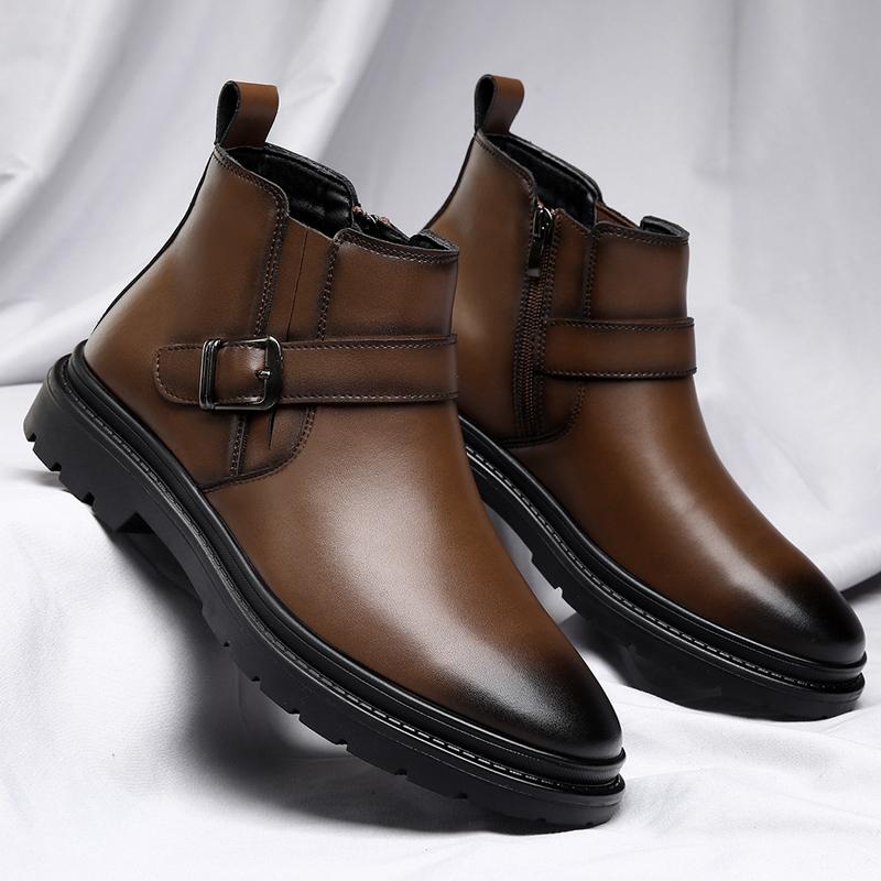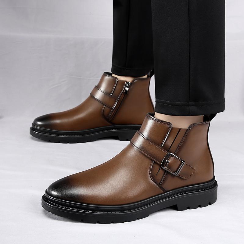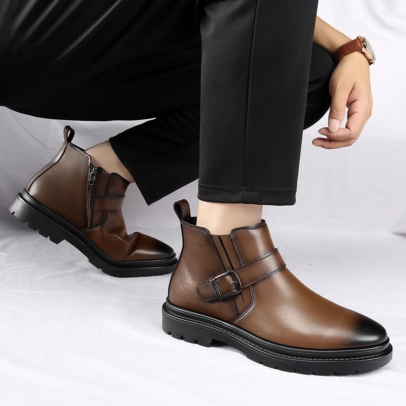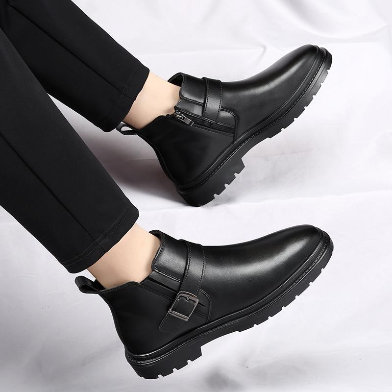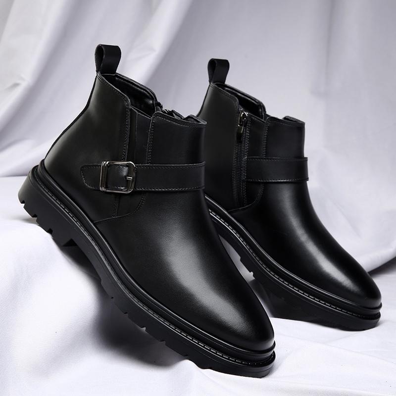 Модные мужские деловые ботинки с боковой молнией, новые зимние ботинки, новые роскошные брендовые мужские мотоциклетные ботинки, высокие универсальные кожаные туфли