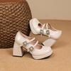 Модные женские туфли Мэри Джейн на толстом каблуке с пряжкой в одну линию, водонепроницаемые, осенние, на платформе, легкие, с вырезом