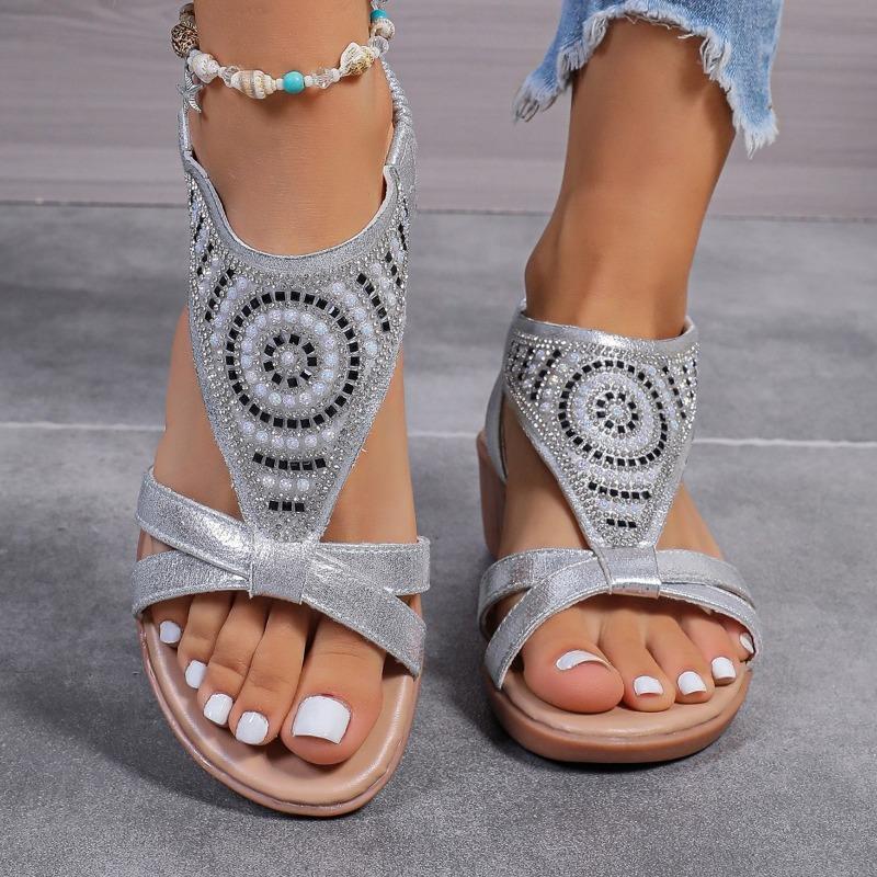 Fashion Women's Plus-size Wedge Sandals Summer New Hollow-out Breathable Sequin Slip-on Soft Sole Non-slip Heels