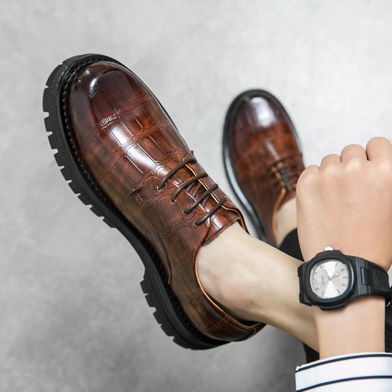 Модные роскошные кожаные туфли на шнуровке с круглым носком и толстой подошвой на платформе, кожаные туфли, деловая обувь, повседневная обувь высокого качества