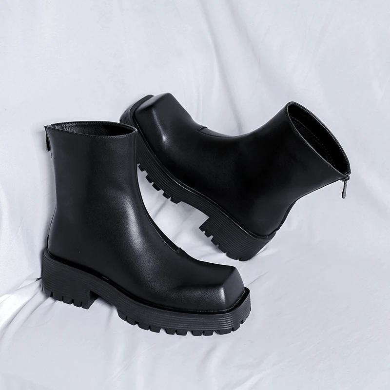 Модные черные ботинки челси с квадратным носком на платформе, каблук с застежкой-молнией, короткие ботинки, мужские высокие кожаные ботинки, мотоциклетные ботинки, мужская обувь — купить товар онлайн с бесплатной доставкой по всему миру!