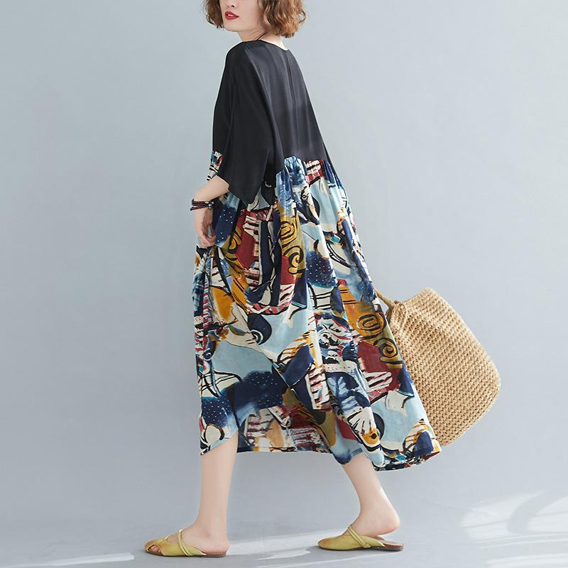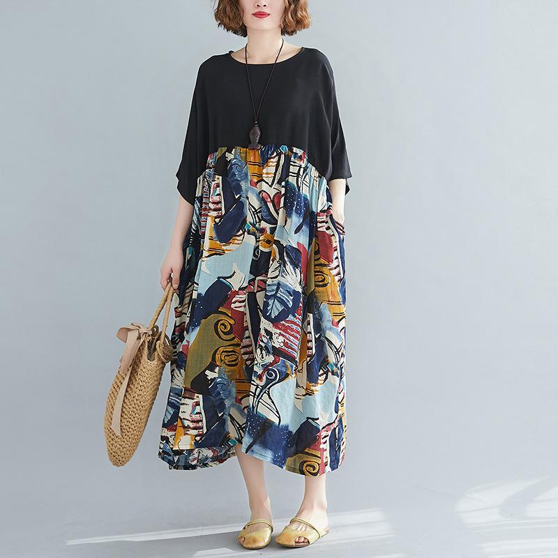 Летнее литературное платье больших размеров свободного кроя с контрастным цветом и принтом в виде качелей и короткими рукавами для женщин