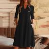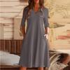 Летнее платье из хлопка и льна с V-образным вырезом и карманами со средними рукавами — купить товар онлайн с бесплатной доставкой по всему миру!