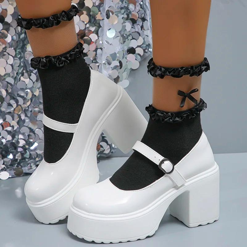 Модные белые туфли Мэри Джейн на толстом каблуке, женские туфли на платформе и очень высоком каблуке, женские туфли Мэри Джейн на толстом каблуке с пряжкой для женщин