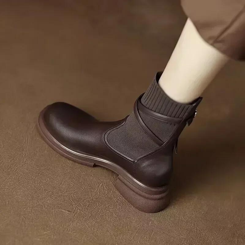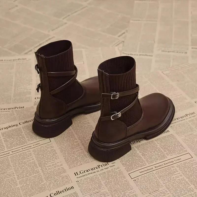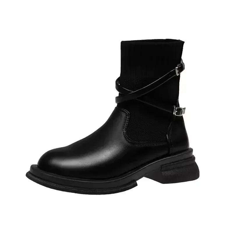 Модный бренд Женская обувь Ботильоны Женские ботинки Классика Современные ботинки Женские Стрейч Слипоны Круглый носок Низкий каблук Обувь с пряжкой Женская