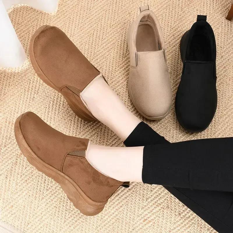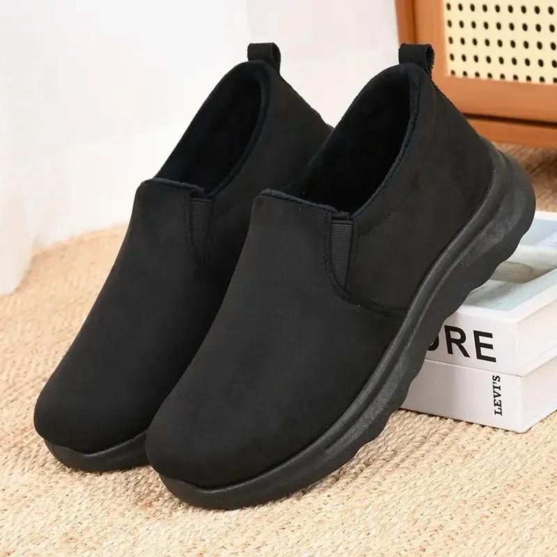Модные хиты продаж, женские туфли на плоской подошве с мелким вырезом, тонкие хлопковые туфли, нескользящие, зимние новые женские туфли 2024 года, новые черные женские ботинки