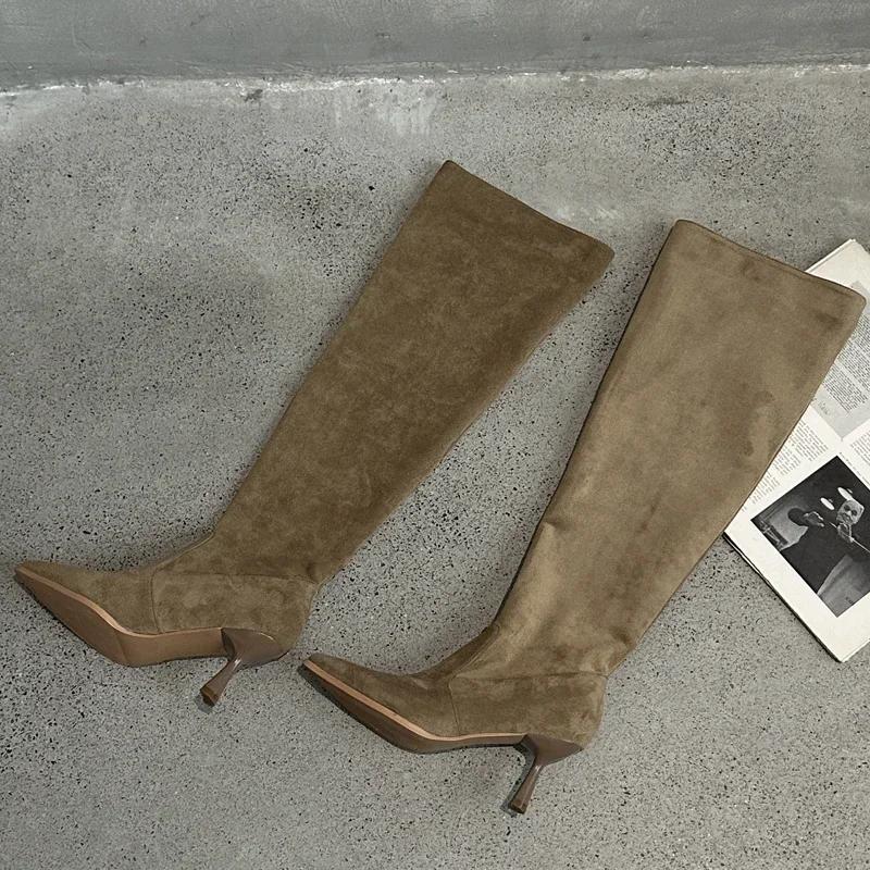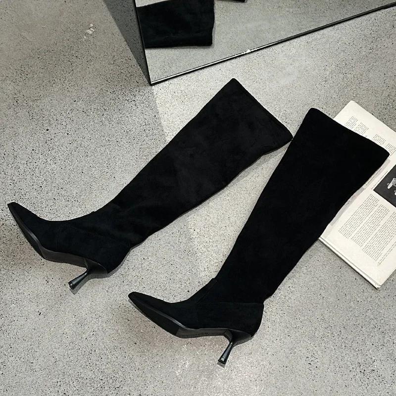 Модные женские высокие сапоги в уличном стиле с острым носком, сапоги до колена, сексуальные плиссированные тонкие каблуки, обувь для стриптиза, выпускной, осень-зима, Botas Altas