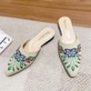 Модные тапочки, туфли для женщин, мюли, роскошные дизайнерские вышитые сандалии в этническом стиле на низком каблуке для дома, женские, новинка в моде