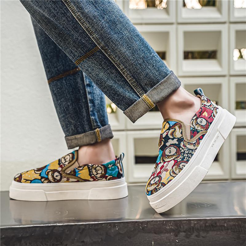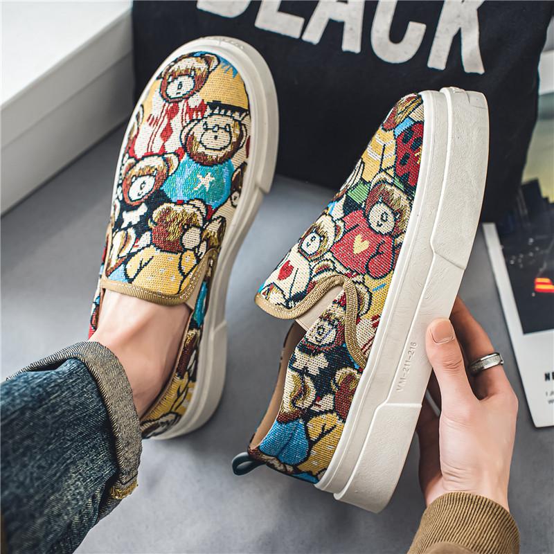 Модные роскошные мокасины мужские туфли на платформе из парусины модные повседневные туфли с принтом медведя мужские дизайнерские классические туфли без застежек мужские эспадрильи