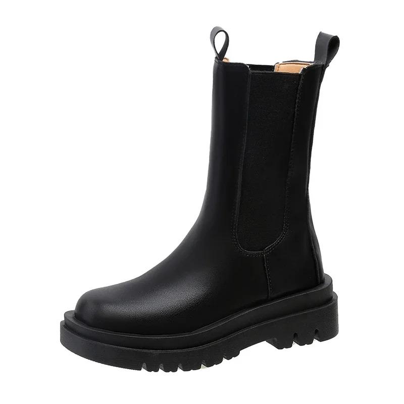 Модные женские ботинки челси, весенние новые черные туфли на плоской платформе средней высоты, женские универсальные классические лаконичные модные туфли с круглым носком