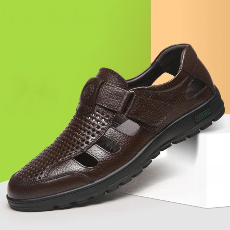Модные мужские сандалии из мягкой кожи 2024 года, летние мужские кожаные сандалии, дышащие, нескользящие, повседневные кожаные туфли с вырезами, пляжная обувь для отдыха на открытом воздухе — купить товар онлайн с бесплатной доставкой по всему миру!