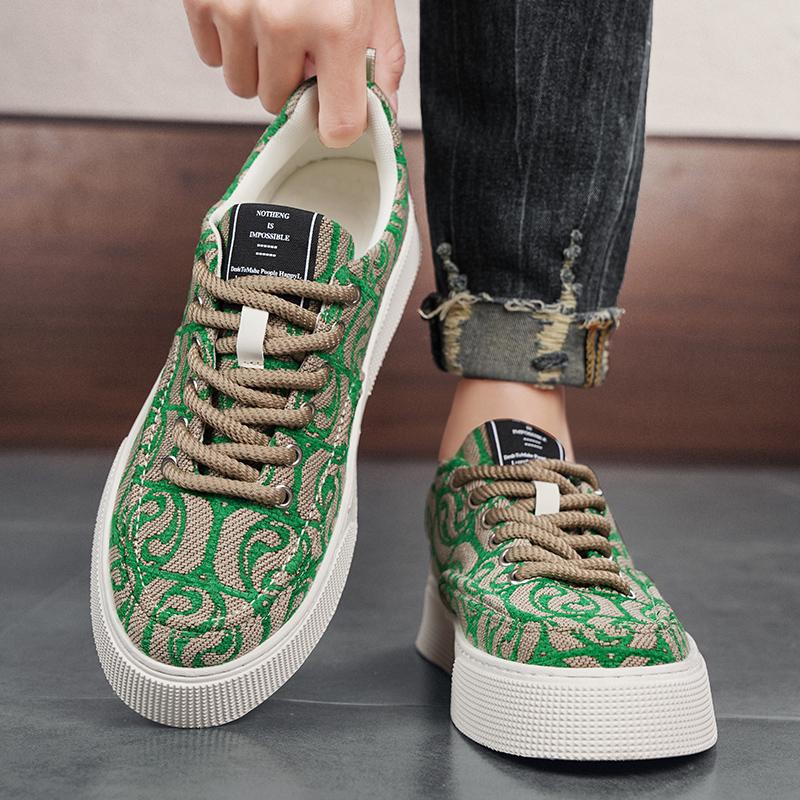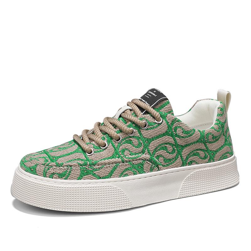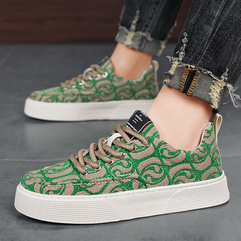 Модные дизайнерские зеленые парусиновые туфли для мужчин, модные мужские кроссовки из вулканизированной ткани с принтом, дышащая спортивная обувь для скейтборда на платформе для мужчин 2024