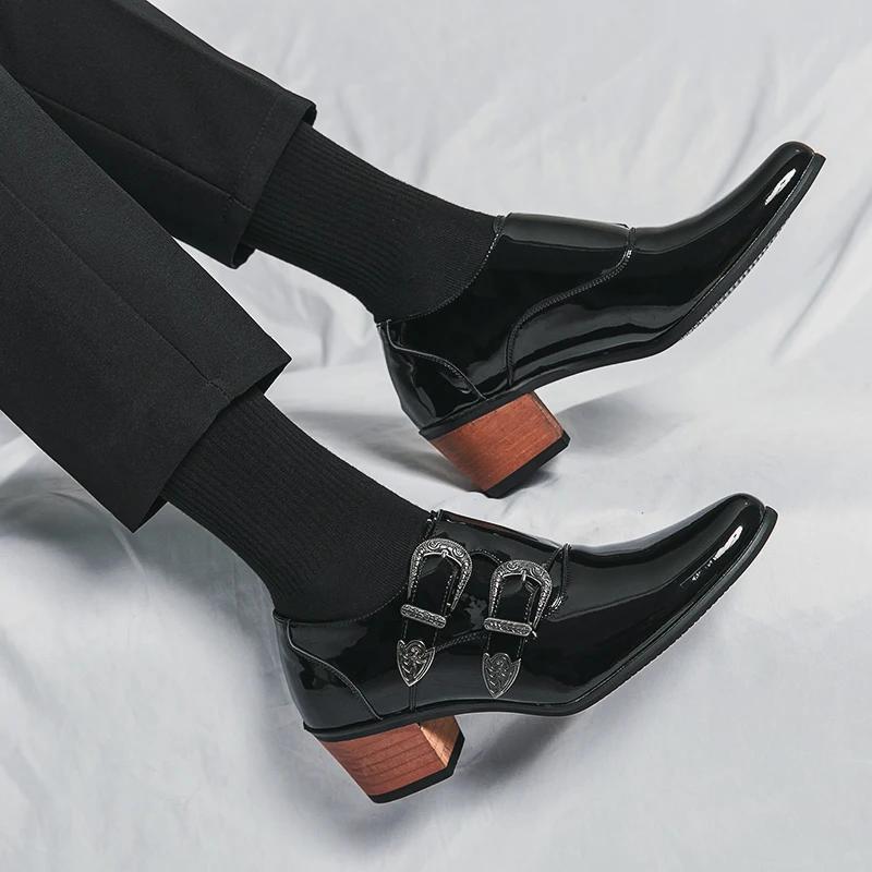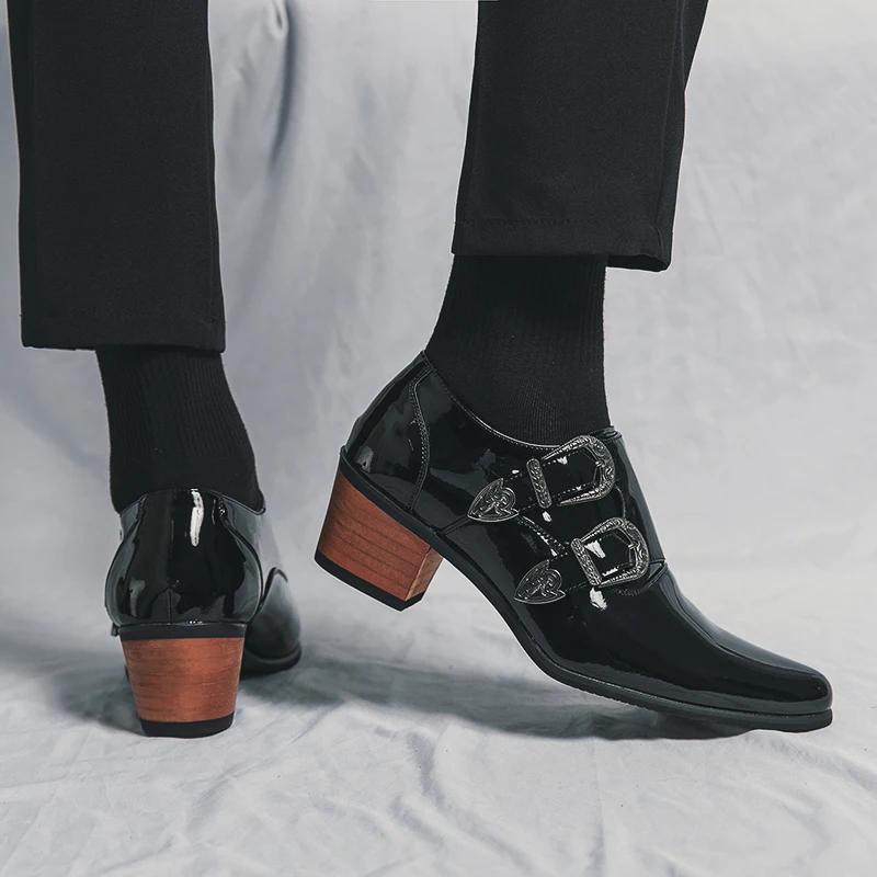 Модные роскошные мужские туфли на высоком каблуке, туфли для выпускного вечера из лакированной кожи, мужские модные туфли в итальянском стиле для мужчин