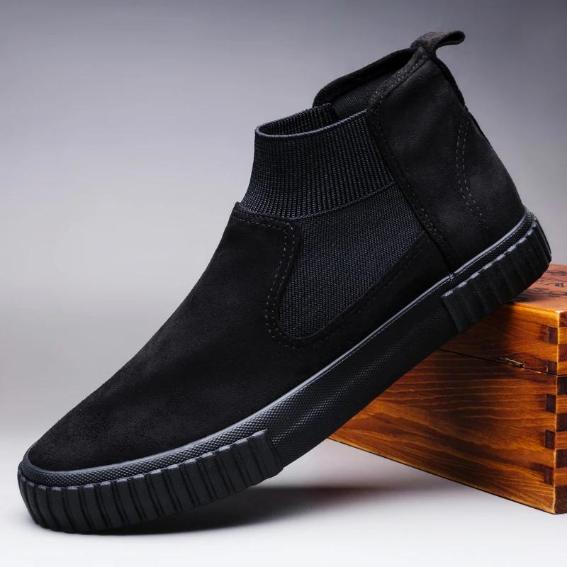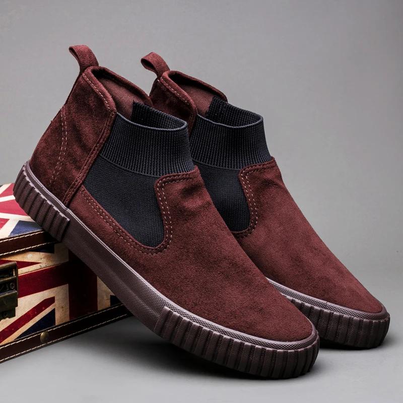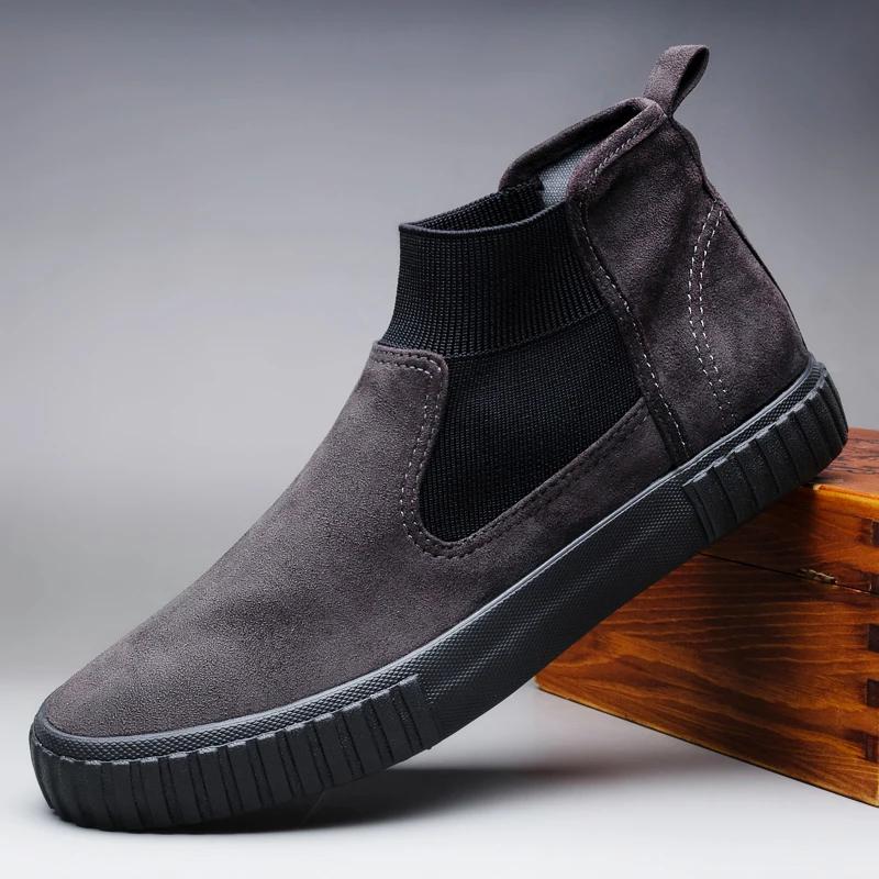 Модные мужские замшевые ботинки Весенняя мода повседневные мужские ботинки челси мужские мужские туфли замшевые кожаные ботинки для мотоциклистов