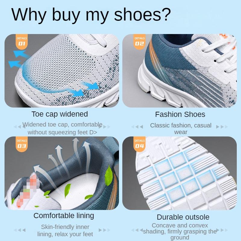 Fashion Men Lightweight Knitting Breathable Soft Bottom Anti-slip Shoes 2024 Summer Mens Lace Up Running Shoes Casual Flats Sneakers