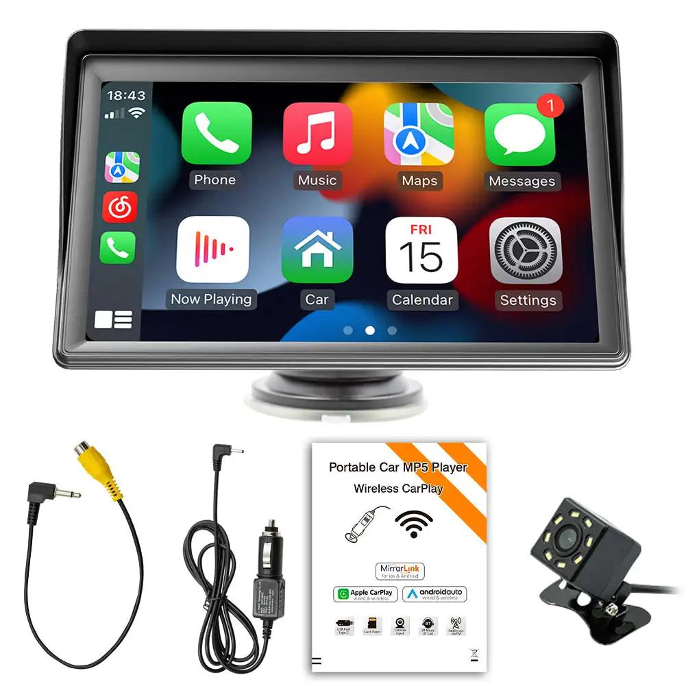 7-дюймовый портативный автомобильный беспроводной Carplay беспроводной Android Auto Car Radio мультимедийный видеоплеер сенсорный экран с солнцезащитным козырьком