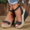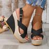Модные босоножки на танкетке для женщин с открытым носком, джинсовые с перекрещивающимися ремешками на платформе, с пряжкой на щиколотке, на высоком каблуке Sandalias De Mujer — купить товар онлайн с бесплатной доставкой по всему миру!