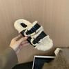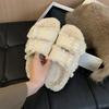 Женские тапочки, уличные шлепанцы, флок, платформа, меховые шлепанцы, 2024, плоская плюшевая осенняя ткань, римская обувь, домашняя обувь Med