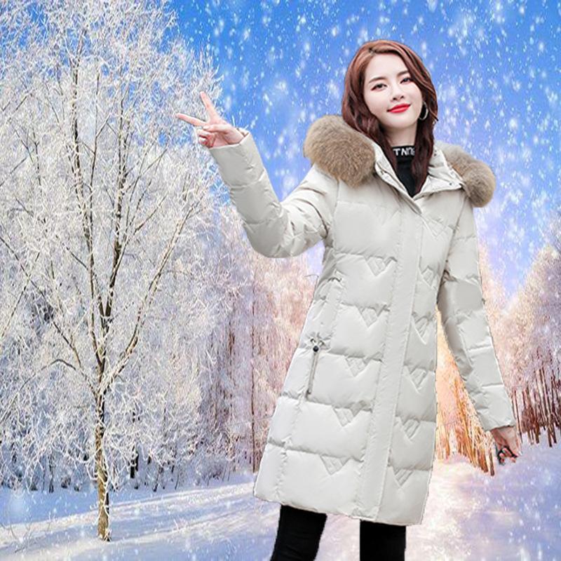 Зимняя куртка-пуховик для женщин, средней длины, белый утиный пух, утолщенная, теплая и темпераментная, облегающая куртка-пуховик для молодой мамы большого размера
