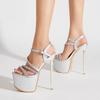 Модные сексуальные туфли на платформе с открытым носком и стразами на супер высоком каблуке для женщин, темпераментные сандалии для банкета с пряжкой на щиколотке
