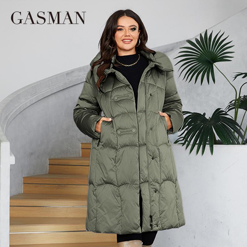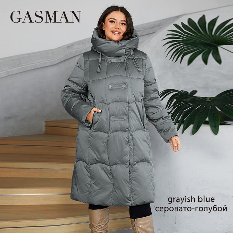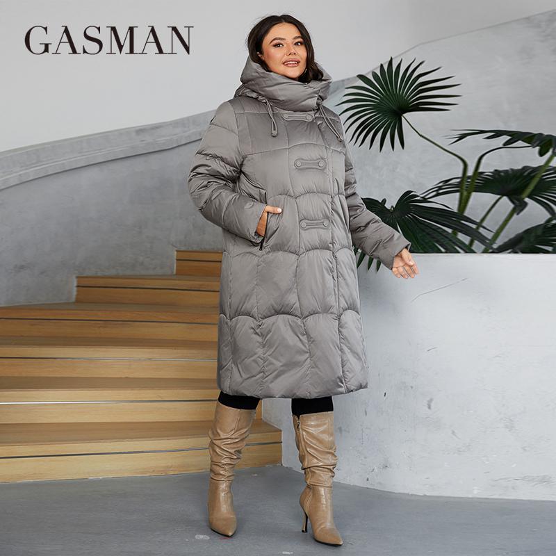GASMAN 2024 Женская зимняя куртка-пуховик, длинный классический дизайн, карман на молнии, женское однотонное пальто для отдыха, парки больших размеров 88599