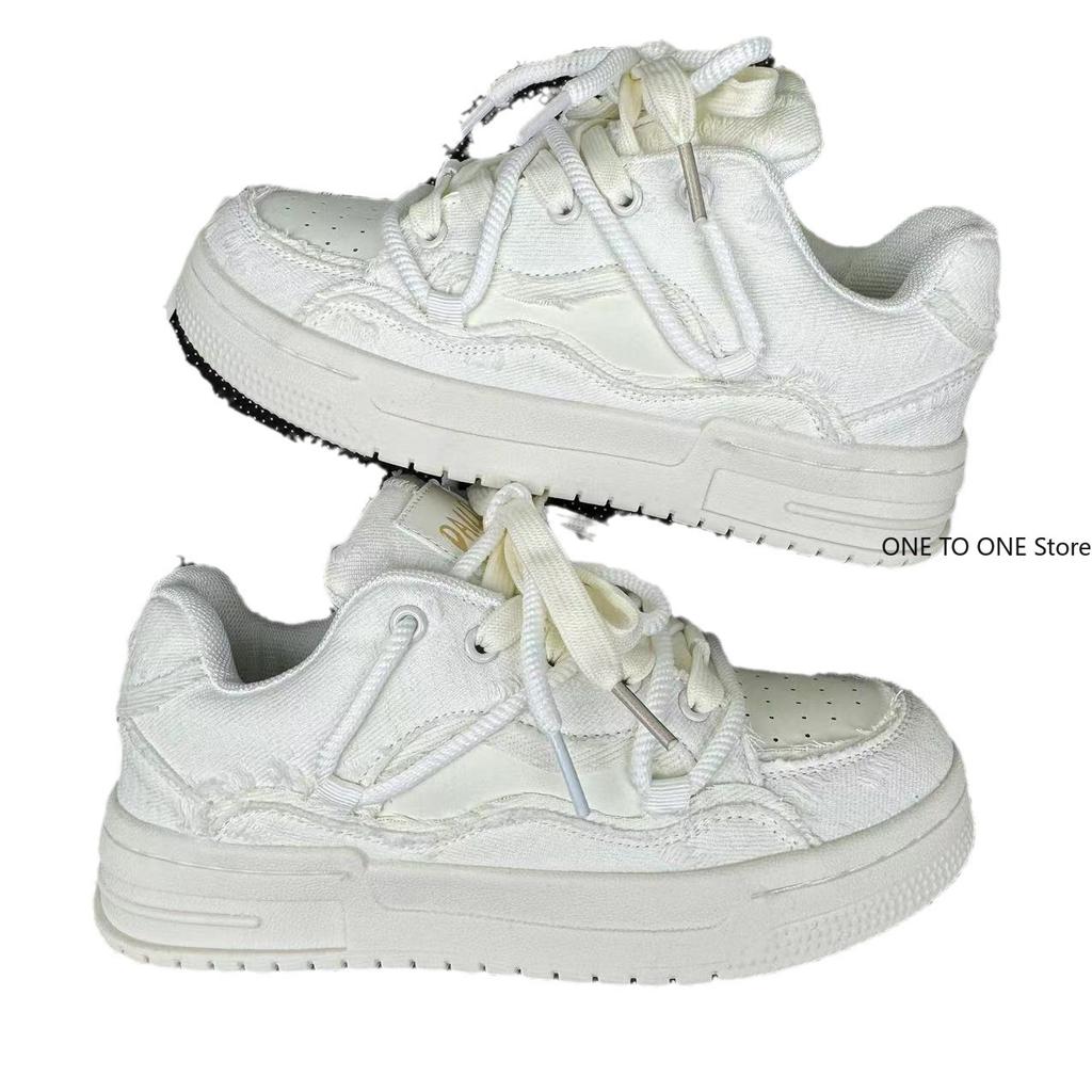 2024 Толстая подошва Белые туфли Модные грубые туфли на плоской подошве для женщин Удобная вулканизированная обувь Новые дизайнерские кроссовки для женщин