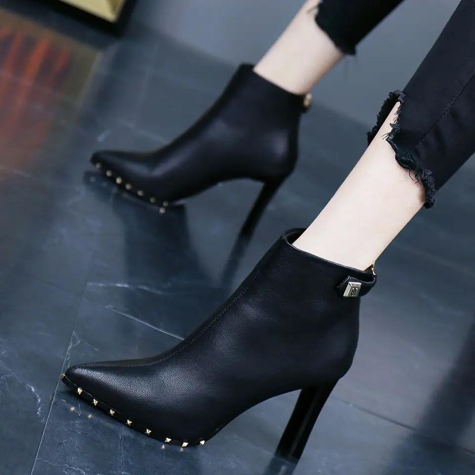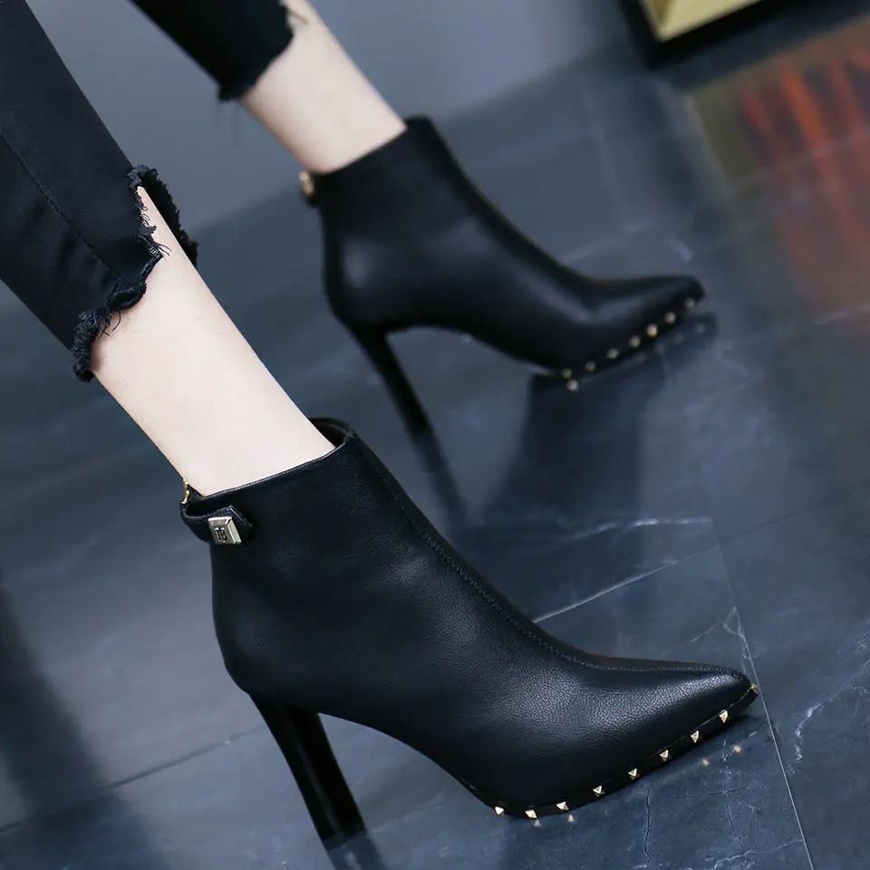 Модные ботильоны с острым носком для женщин, белые кожаные женские короткие туфли с заклепками, распродажа, новинка, удобная и элегантная обувь