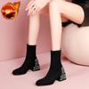 Модные женские ботильоны из замши, черные, женские, короткие, со стразами, элегантные, на среднем каблуке, распродажа, готические, удобные, Y2k Boot